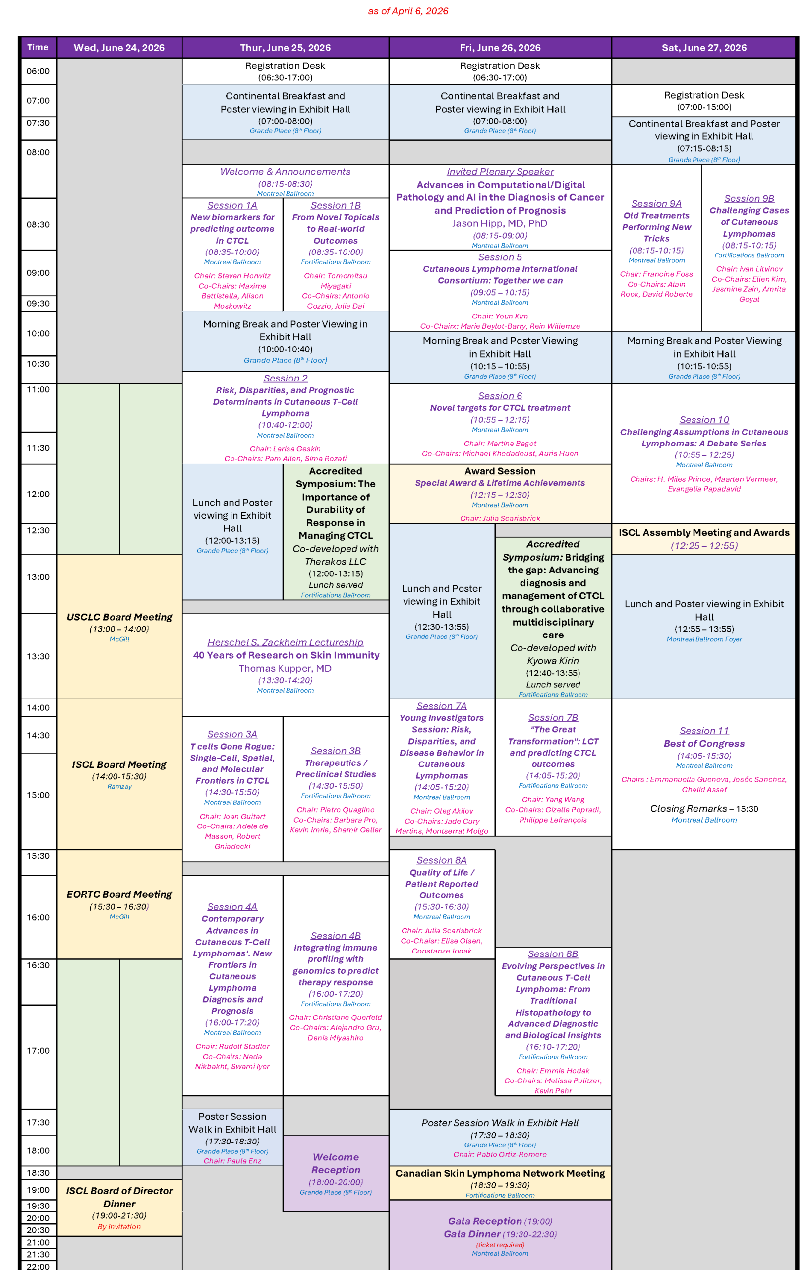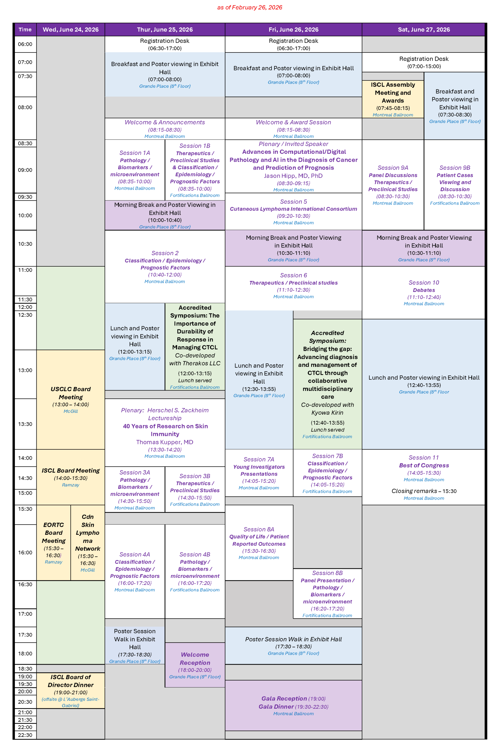 The 6th World Congress of Cutaneous Lymphomas (6WCCL) will be held June 25–27, 2026, at the Westin Montréal in Montréal, Canada. This premier international meeting will showcase the latest advances in the research, diagnosis, and management of cutaneous lymphomas. The Scientific Committee invites you to submit abstracts for consideration as oral or poster presentations. Including opportunities for young investigators. Submissions from across the global community of experts are encouraged, with acceptance based on scientific merit. Join us in contributing to a dynamic program that will make this our most impactful Congress yet.